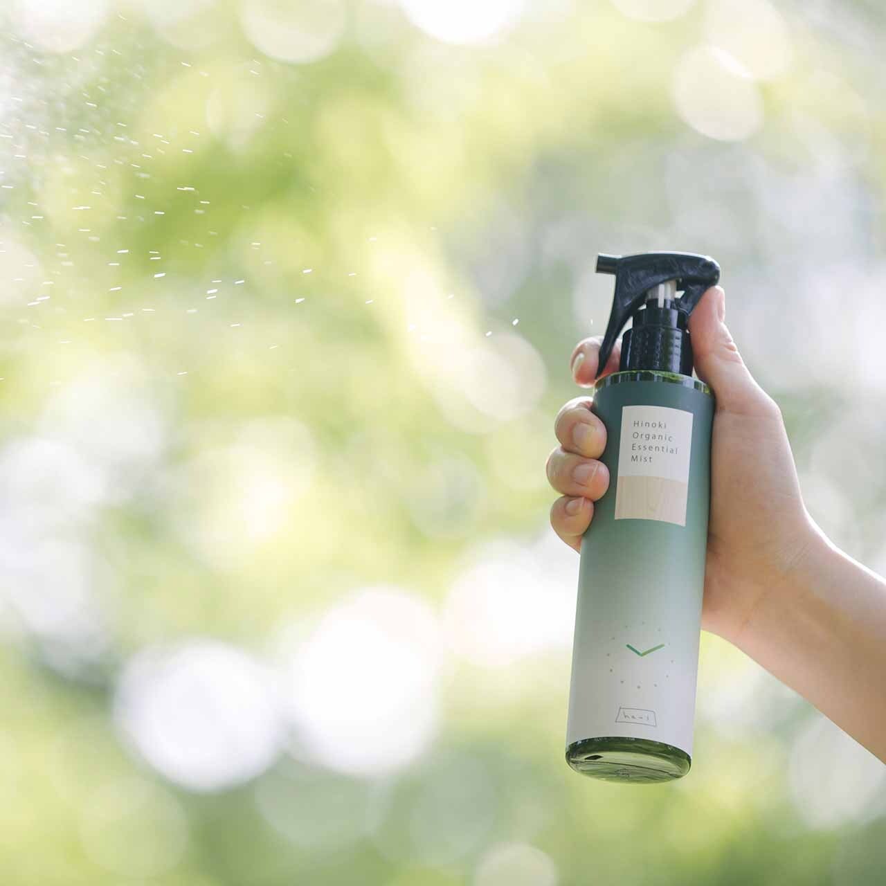 高純度高濃度の九州・延岡産ヒノキオイルを主原料とした「 hausヒノキオーガニックエッセンシャルミスト 」は清潔で安心安全なフレッシュルームミストとして毎日のくらしを浄化し心地よい時間と空間をつくります。